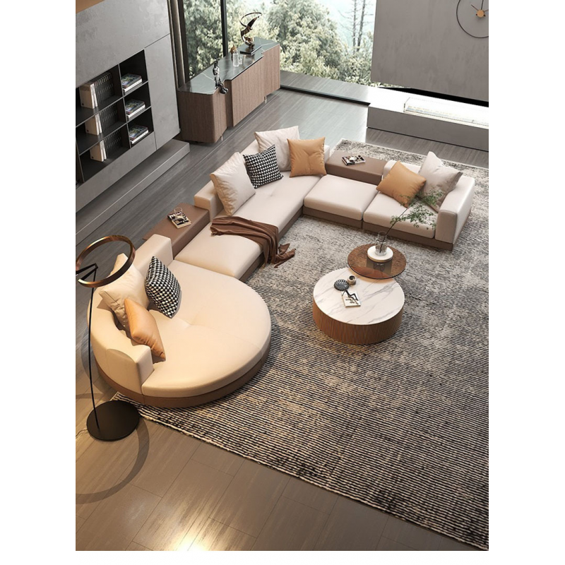 L-Shaped Corner Sofa with Round Ottoman for Living Room (Suitable for Small/Medium-sized Spaces, Light Luxury Style)
